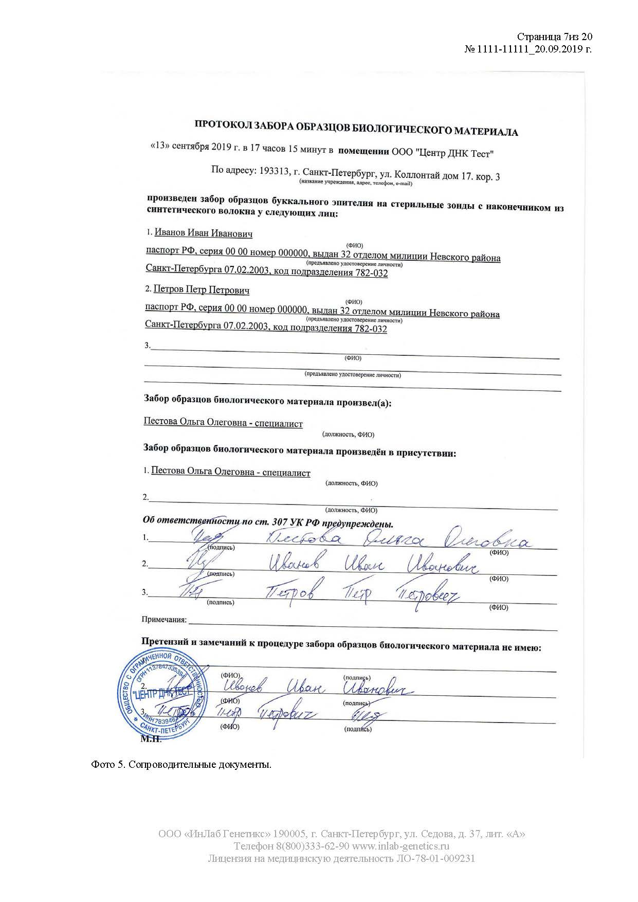 Лаборатория имеет полную аккредитацию и сертификацию. Наши заключения являются полными и развернутыми. Генетическая экспертиза ДНК становится основным доказательством в судебных спорах и принимаются всеми судами и государственными учреждениями Российской Федерации.